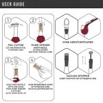 Táto 4-v-1 sada obsahuje otvárač s pumpou na vzduch, orezávač fólie, prevzdušňovač a vákuovú zátku pre dokonalý zážitok z vína.