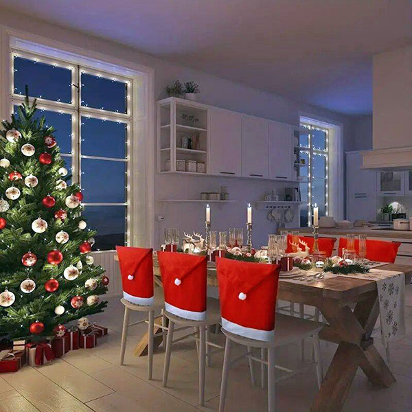 Dodajte svojmu jedálenskému priestoru útulnú, slávnostnú atmosféru s týmito návlekmi, ktoré pripomínajú klasickú Santovu červenú čiapku, doplnenú bielou plyšovou bambulou na vrchu. Zábavný a hrejivý doplnok ku každej vianočnej oslave!