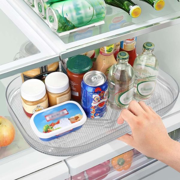 Udržujte si chladničku prehľadnú a čistú s našou priehľadnou obdĺžnikovou táckou do chladničky. Tento organizér do chladničky, otočný o 360°, je ideálny na ľahký prístup a maximálne využitie priestoru. Jednoducho sa čistí, má protišmykové prísavky a nevyžaduje si žiadnu inštaláciu.