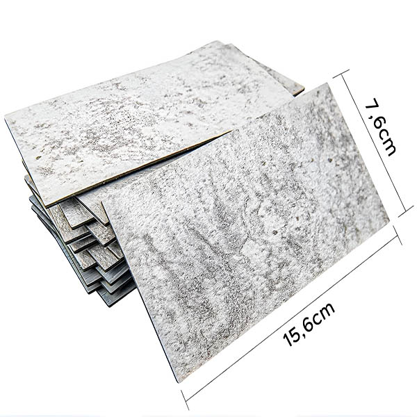Obdĺžnikový tvar (15,6 x 7,6 cm) umožňuje vytvárať rôzne atraktívne vzory. Každé balenie 10 dlaždíc pokrýva približne 0,12 metra štvorcového, čo je ideálne na tvorivé návrhy.